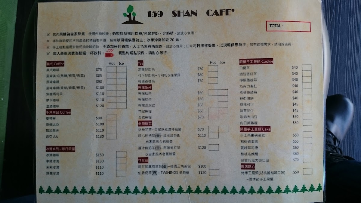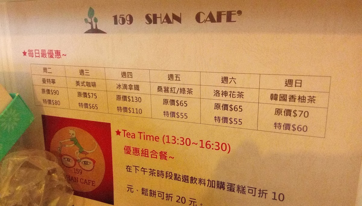 159 Shan Cafe Menu
